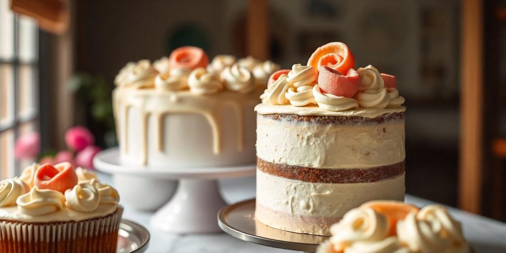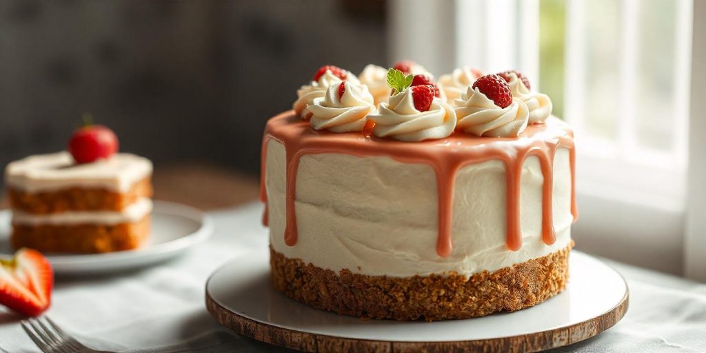 - Tarta con Glaseado de Fresa: Esta tarta es perfecta para quienes buscan un toque frutal. Con su glaseado de fresa fresco y dulce, combina a la perfección con un bizcocho esponjoso, creando una experiencia refrescante y deliciosa.