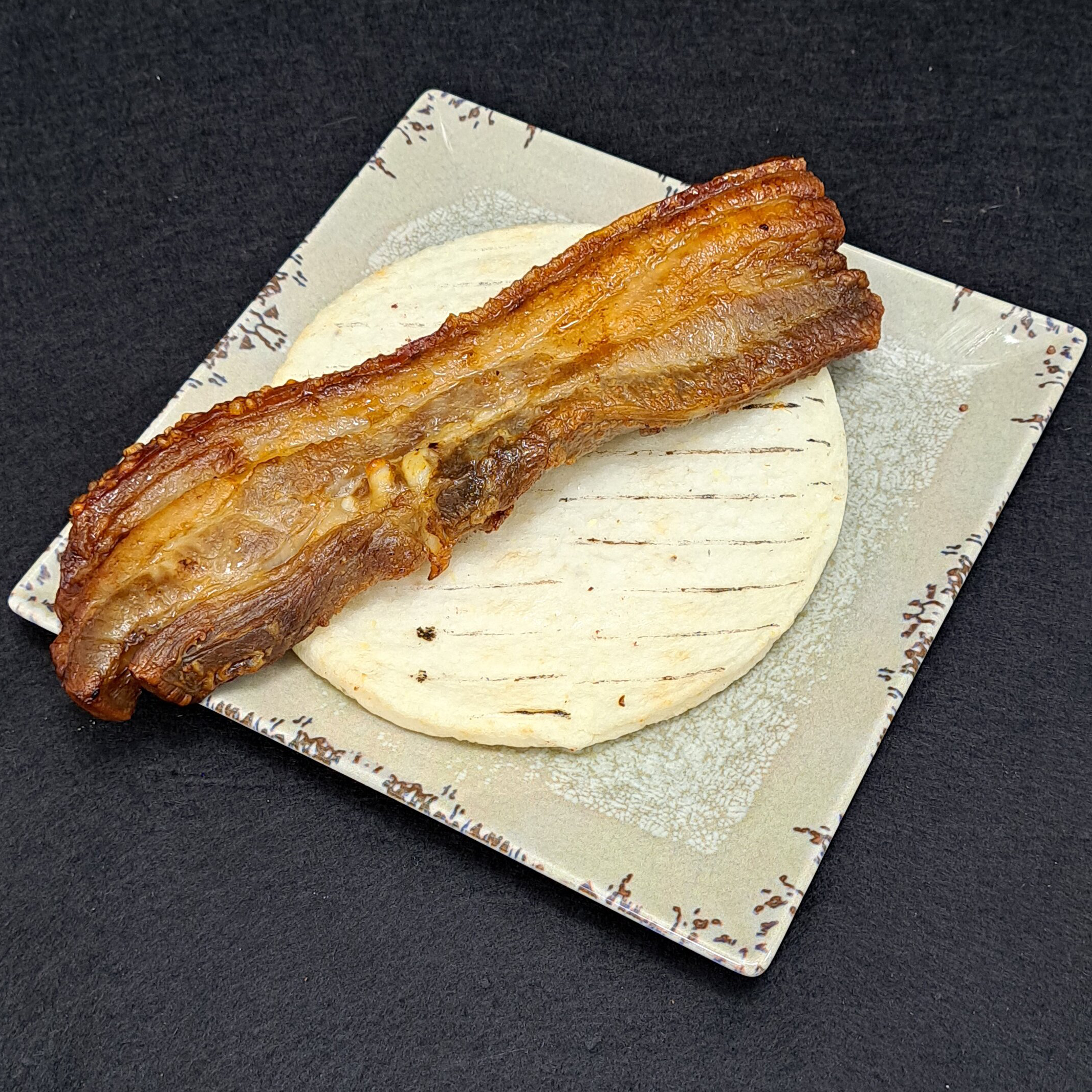 Nuestra panceta, jugosa y crujiente, se cocina lentamente en horno hasta alcanzar el punto perfecto, brindándote una experiencia única. ¿Te imaginas ese primer mordisco? La panceta se deshace en tu boca mientras la arepa de maíz, suave y esponjosa, completa el festín. Juntos forman una combinación irresistible que te hará querer repetir una y otra vez.